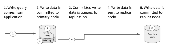 마스터 서버에서 데이터 변경을 처리하게 되면 해당 변경사항을 로그 파일에 기록하게 된다. 이후 슬레이브 서버에서 마스터의 로그를 읽고, 기록된 변경 사항을 자신의 데이터베이스에 적용하게 된다.