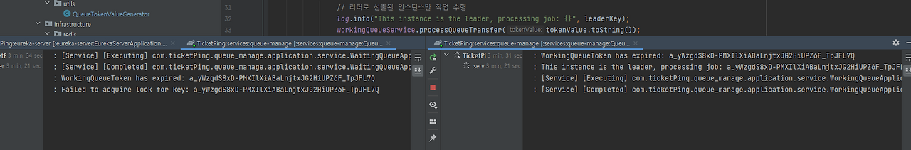 2개의 인스턴스 실행 시 한쪽에서만 메서드를 실행하는 것을 확인할 수 있다.