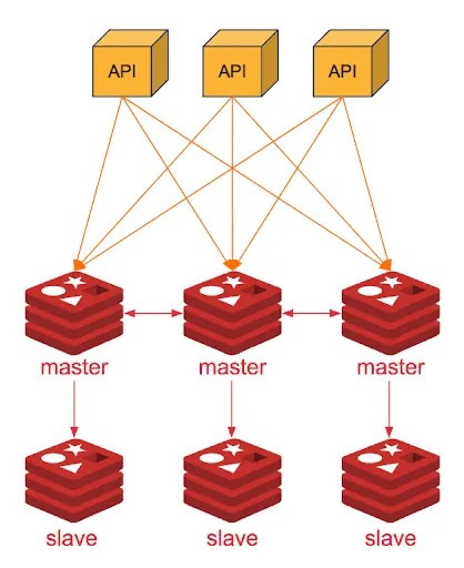 Cluster 역시 마스터-슬레이브 구조를 가지지만 Sentinel과 달리 여러 대의 마스터 노드가 존재한다. 각 마스터는 특정 데이터 샤드를 책임지며, 클러스터의 데이터를 분산 저장한다.